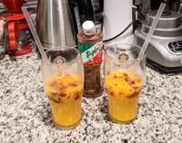 I bought a papaya, so why not? I made this as a frozen drink and used some papaya seeds as garnish, and they turned out to be a really nice textural addition and flavor note in contrast with the drink.