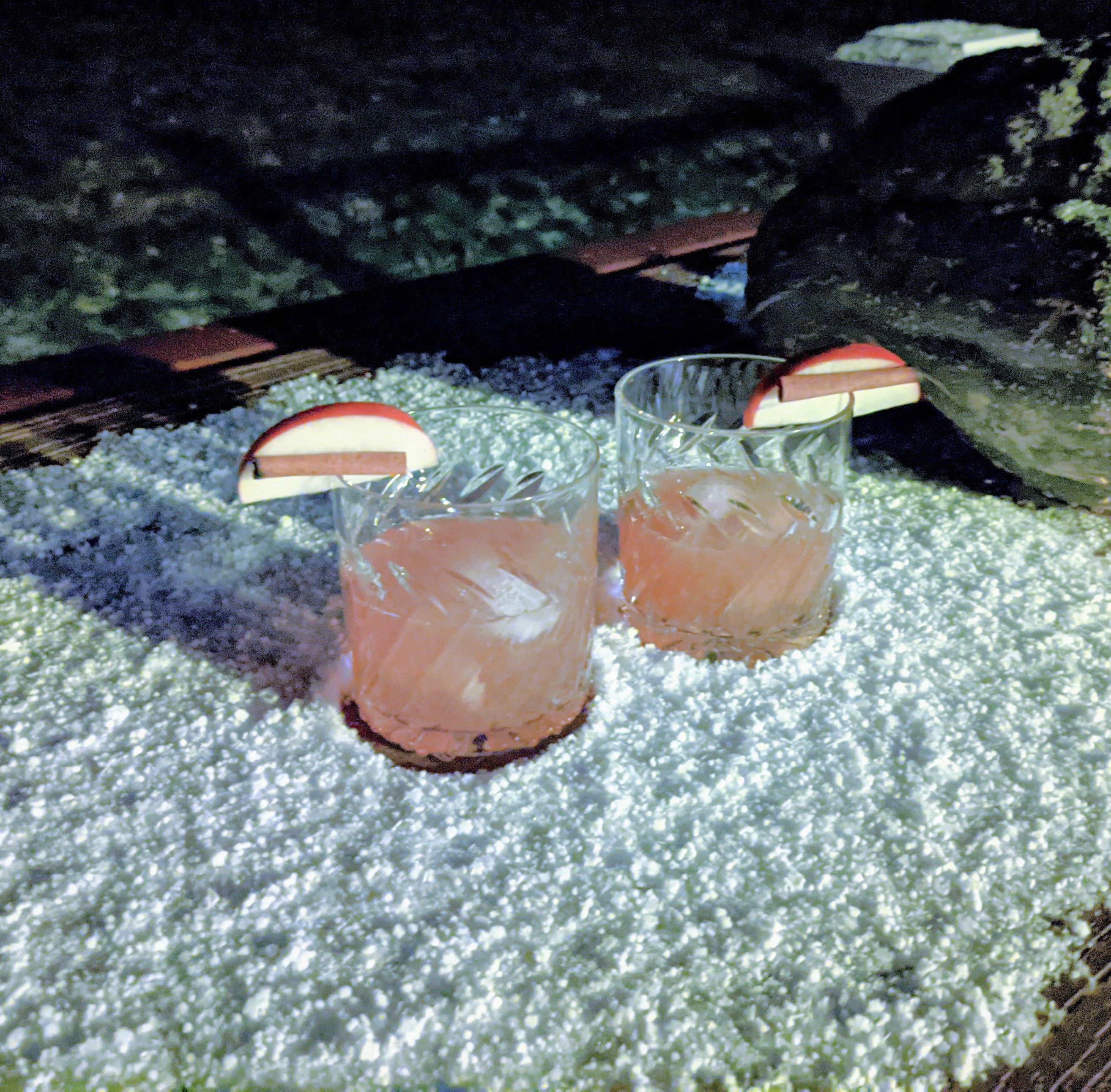 1 oz applejack 1 oz aged rum ¼ oz amaro Abano ¾ oz fresh lemon juice ½ oz cinnamon syrup, or to taste 1 barspoon Laphraoig 10- year whisky 2 dashes cardamom bitters Garnish: apple slice, smoked cinnamon stick