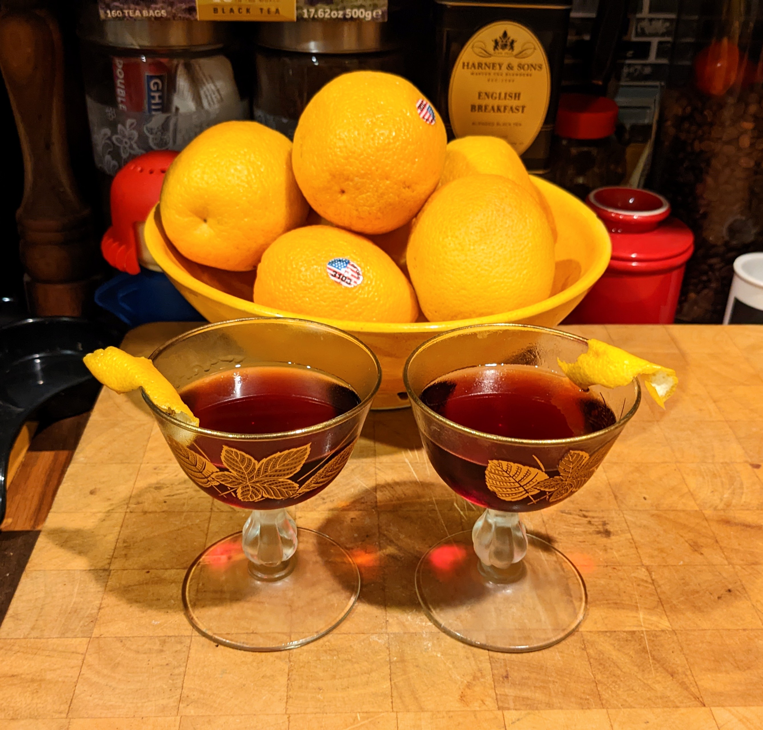 4. Express a lemon and an orange peel over cocktail. Garnish with peels (optional).
