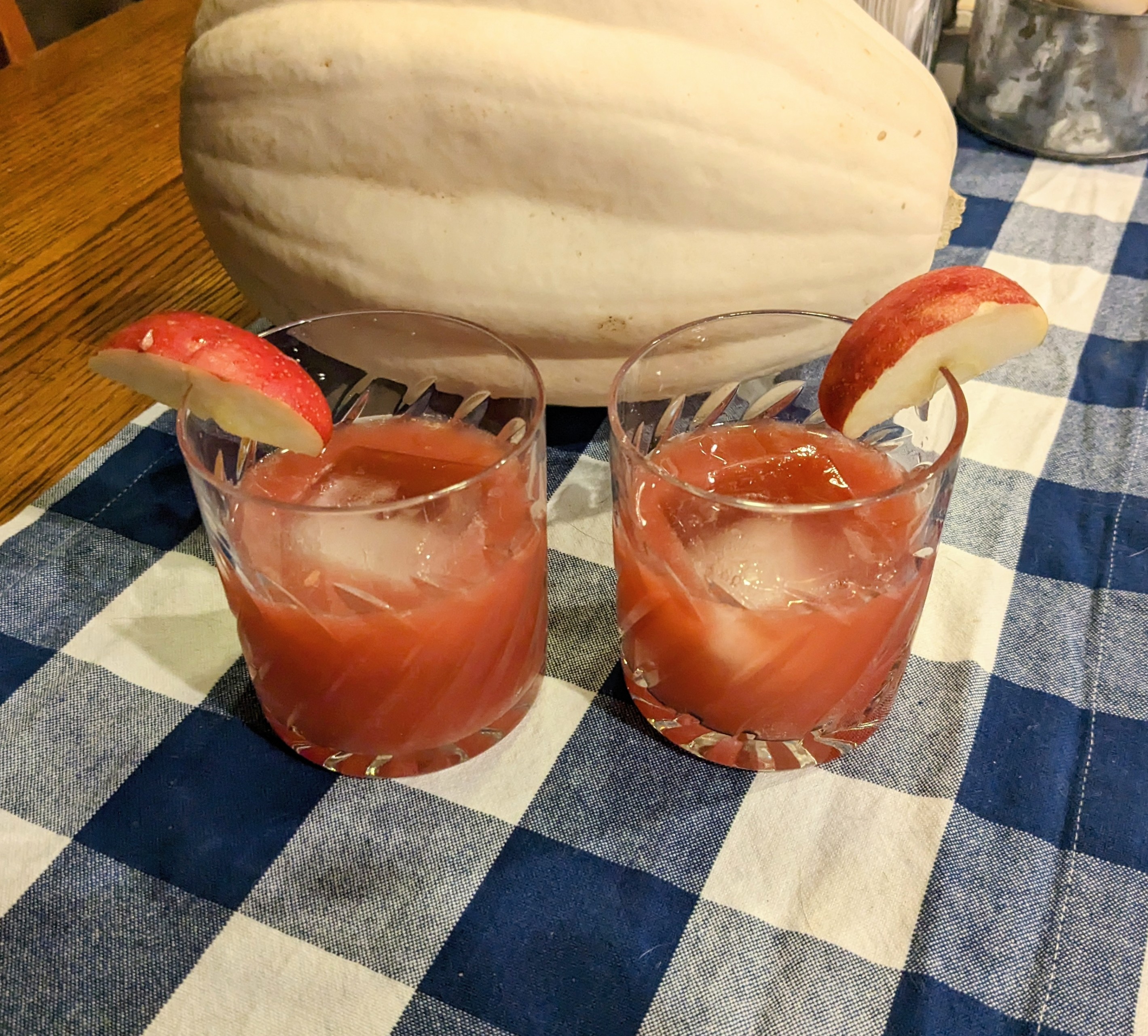4\. Garnish with a dried apple slice and a few pomegranate seeds.