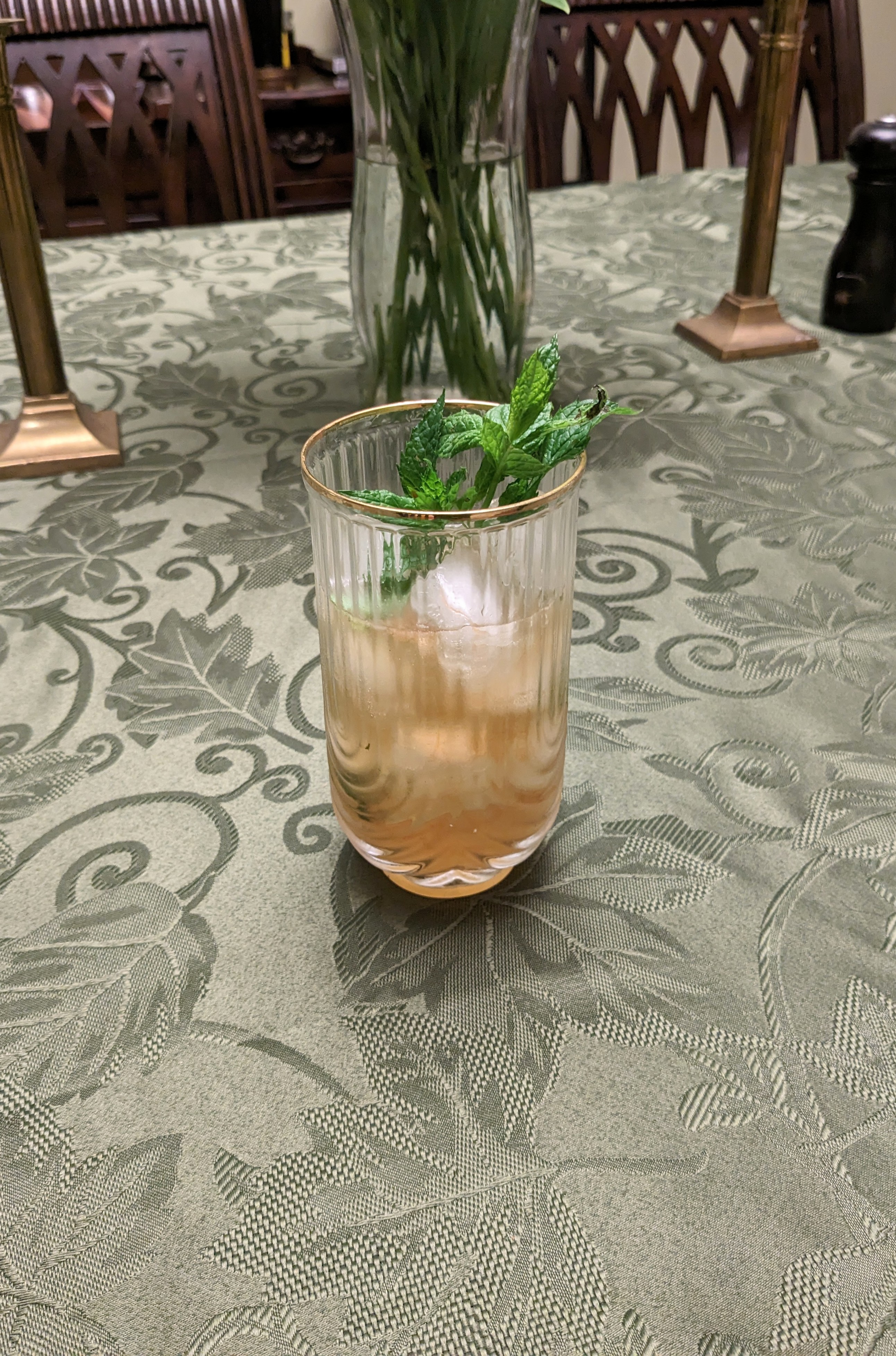 Muddle the mint at the bottom of a tall glass. Add the rum, lemon juice, and falernum and fill the glass halfway with crushed ice. Stir with a swizzle stick or a barspoon. Top off the glass with more crushed ice and garnish with the aromatic bitters and a few sprigs of mint.