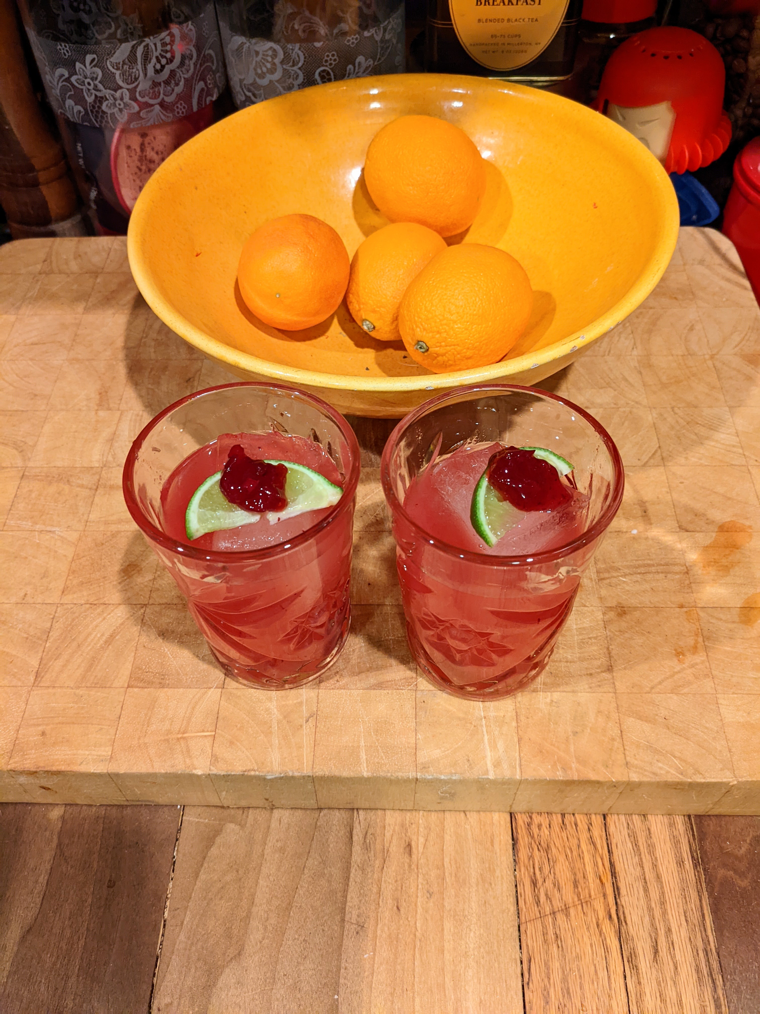Shake with ice. Double strain into a glass over fresh ice. Garnish with a lime wedge and ligonberry jam.