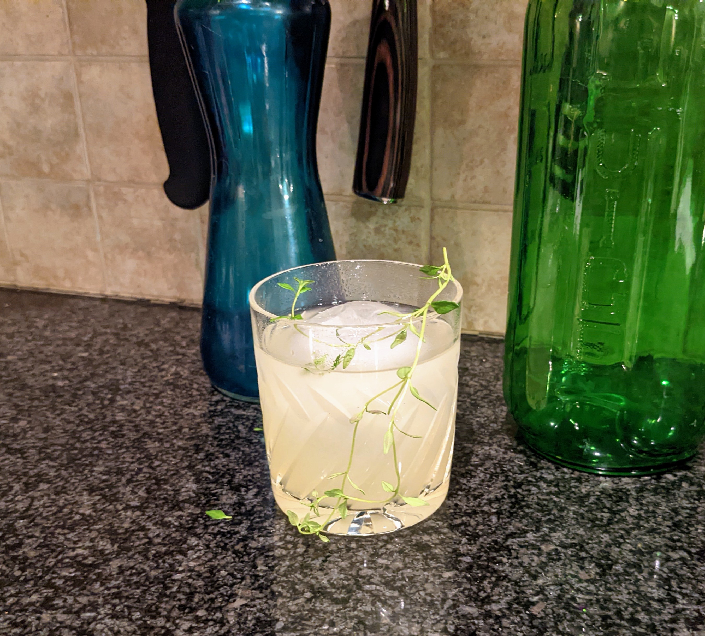 2 oz duck fat-washed mezcal ¾ oz lemon juice ½ oz honey syrup Fresh thyme Muddle thyme with lemon juice and honey syrup. Add mezcal and ice and stir. Fine strain over fresh ice. Garnish with a spritz of thyme and black pepper finishing spray.