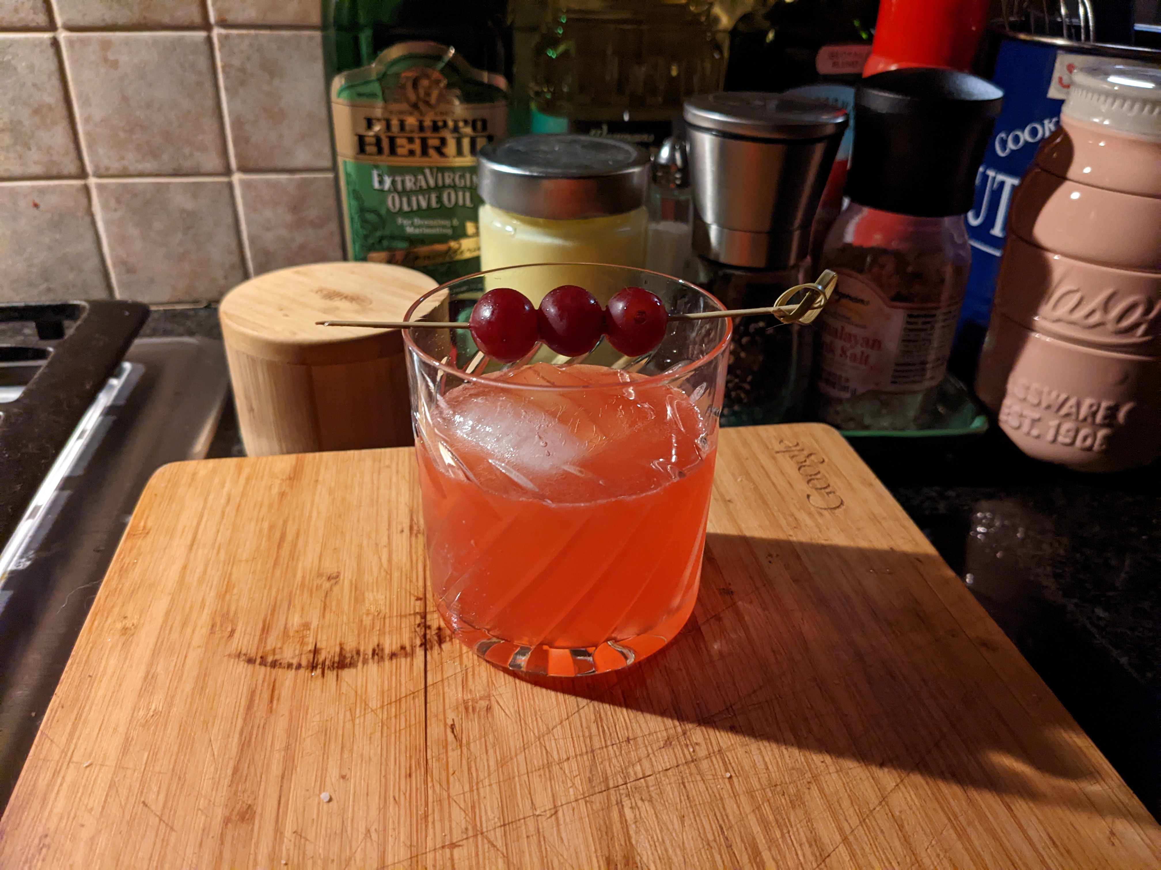 5-6 grapes muddled 1 oz gin 1 oz campari 0.75 oz Lemon juice 0.5 oz Sugar syrup Orange peel and grapes garnish Muddle the grapes and shake with rest of the ingredients. Serve in an OF glass over one large ice cube. Garnish.