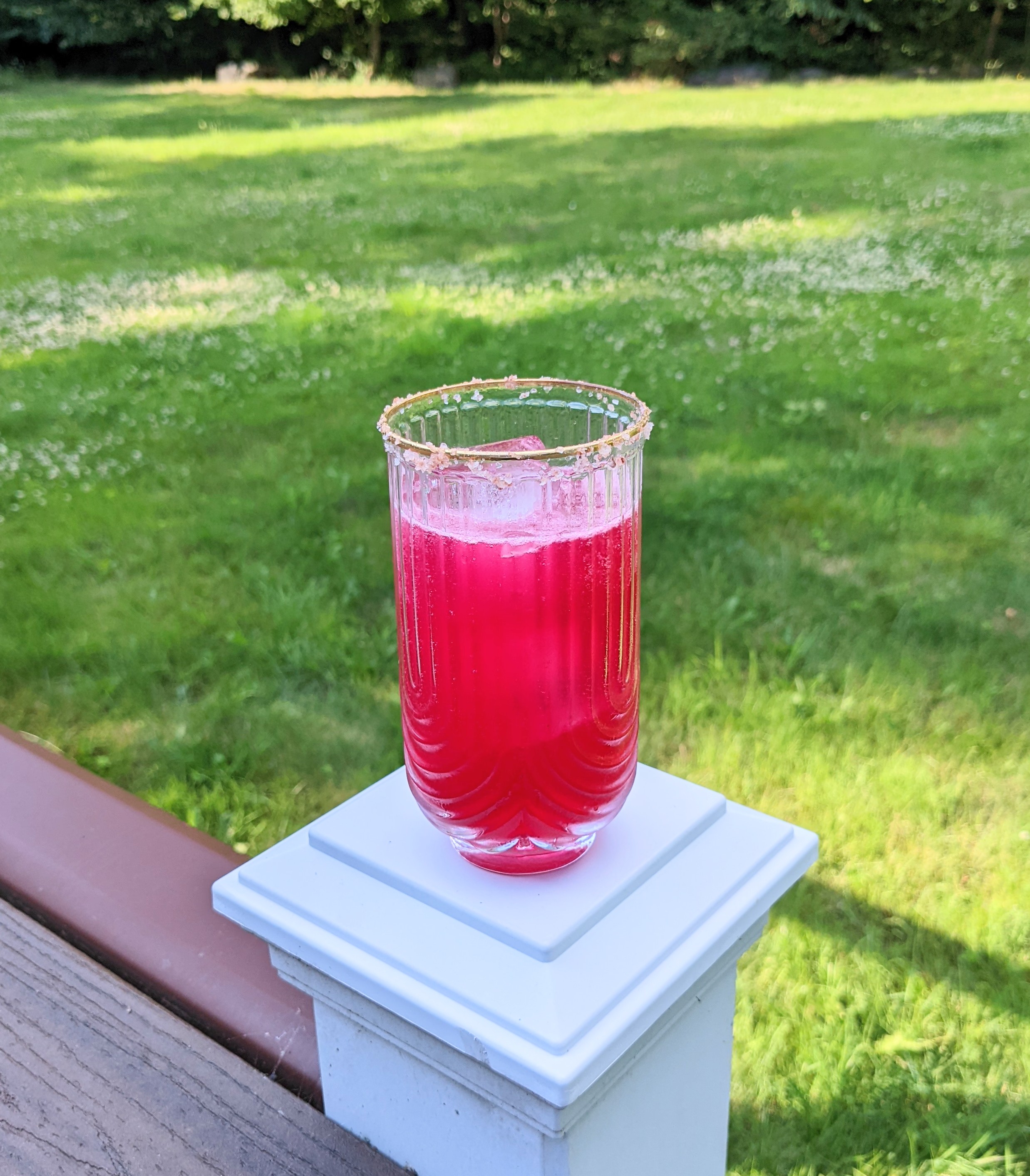 Shake aquavit, lemon juice, syrup, and salt with ice. Strain over fresh ice and top with sparkling water. Garnish.