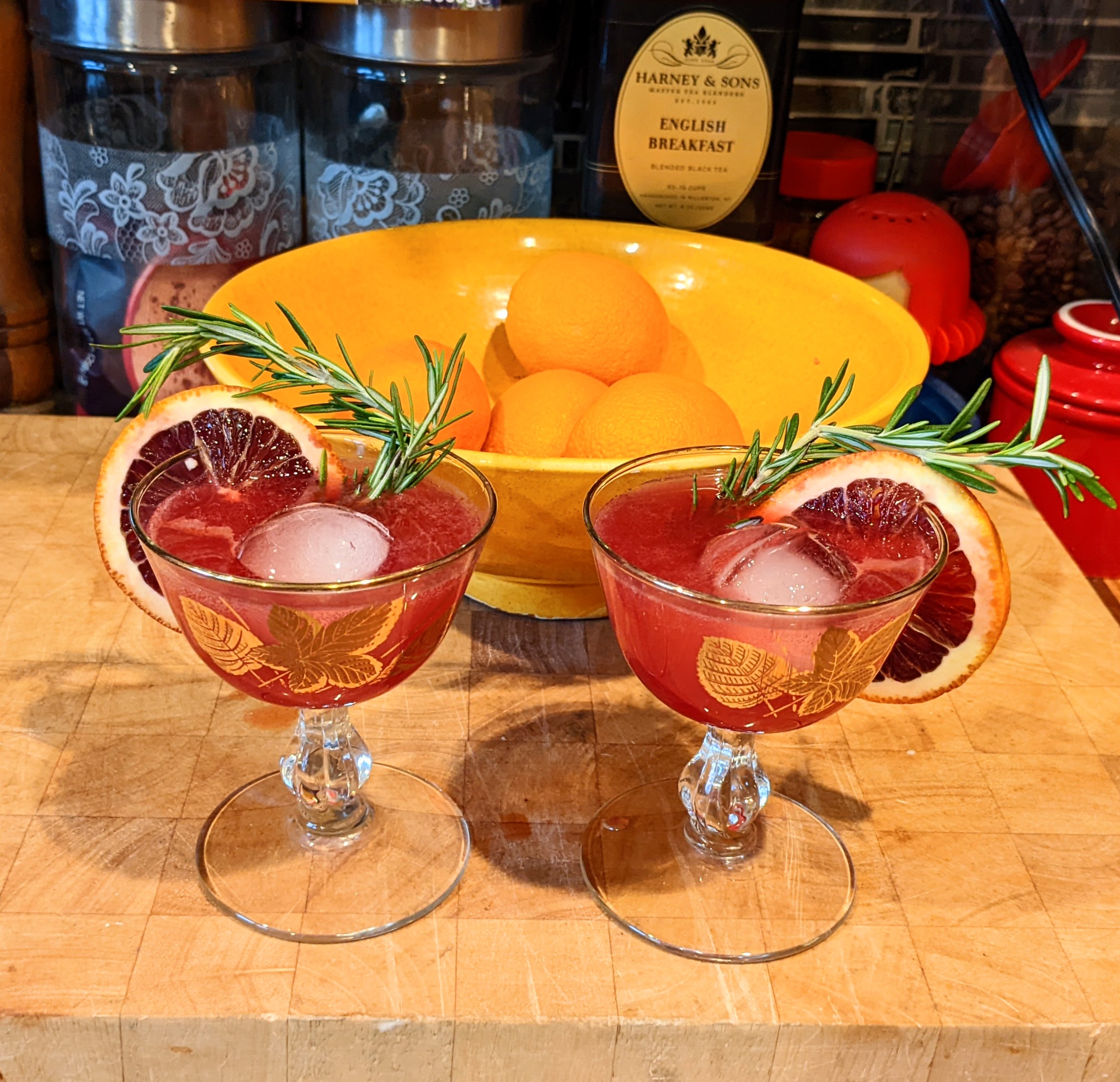 Blood oranges are always great, but with the rosemary syrup here this whole drink is wonderful.