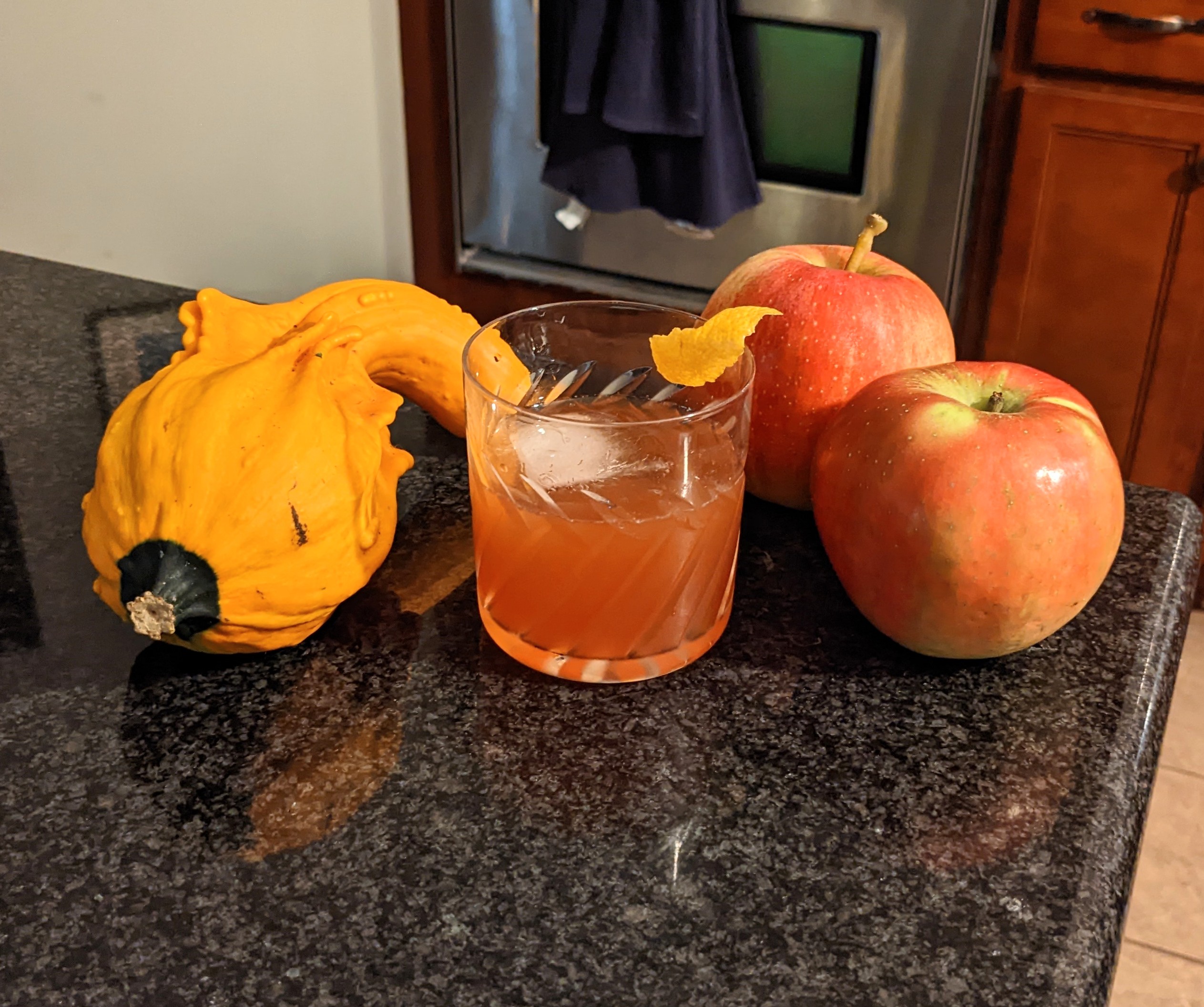 Meanwhile, place a dash of absinthe (or anise liqueur) in a short glass, and swirl to coat. Discard the excess, and fill the glass with ice. Strain the mixture into the glass and top with cider. Garnish with a lemon twist.