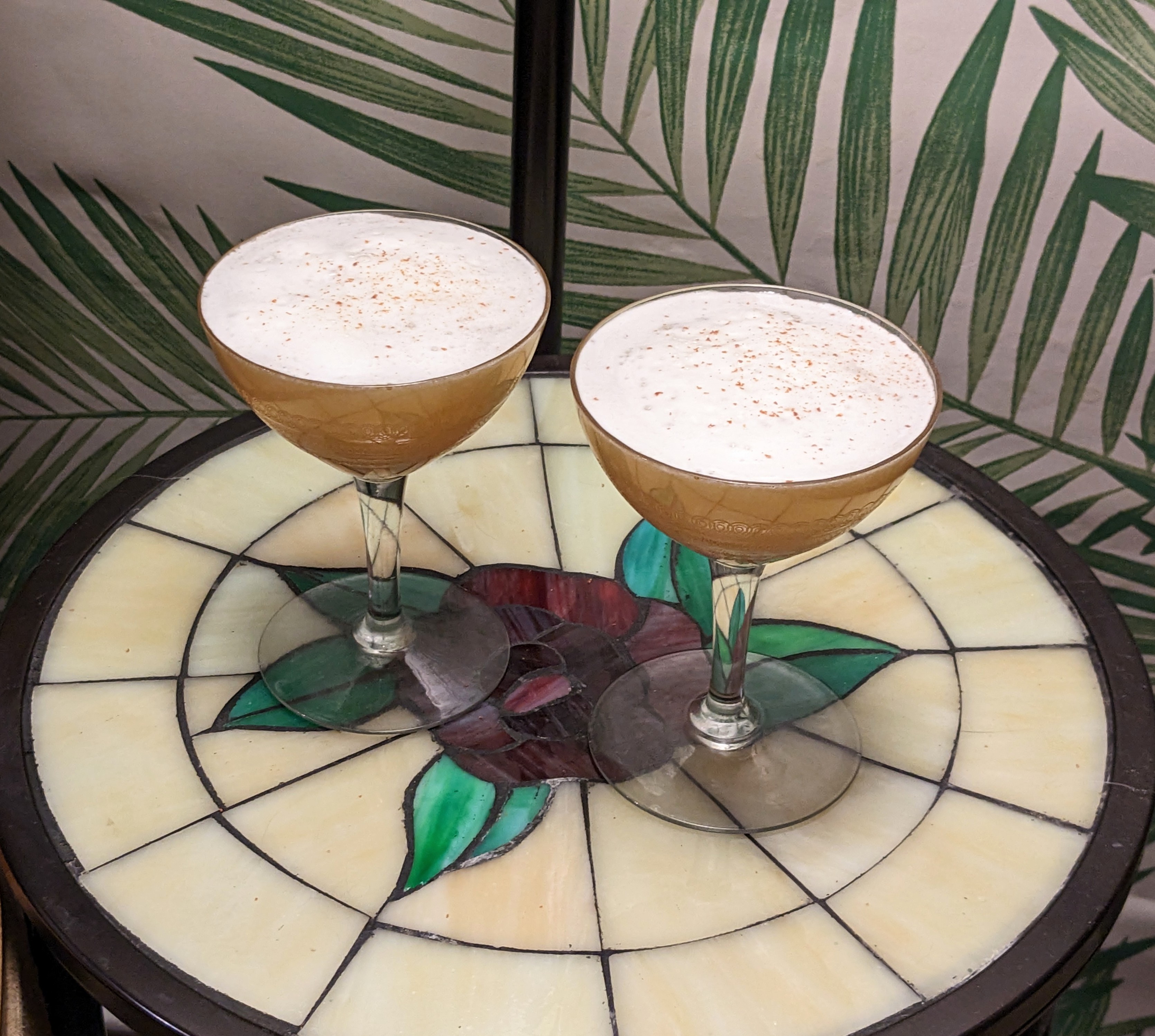 Strain into a coupe glass, and garnish with freshly grated cinnamon.