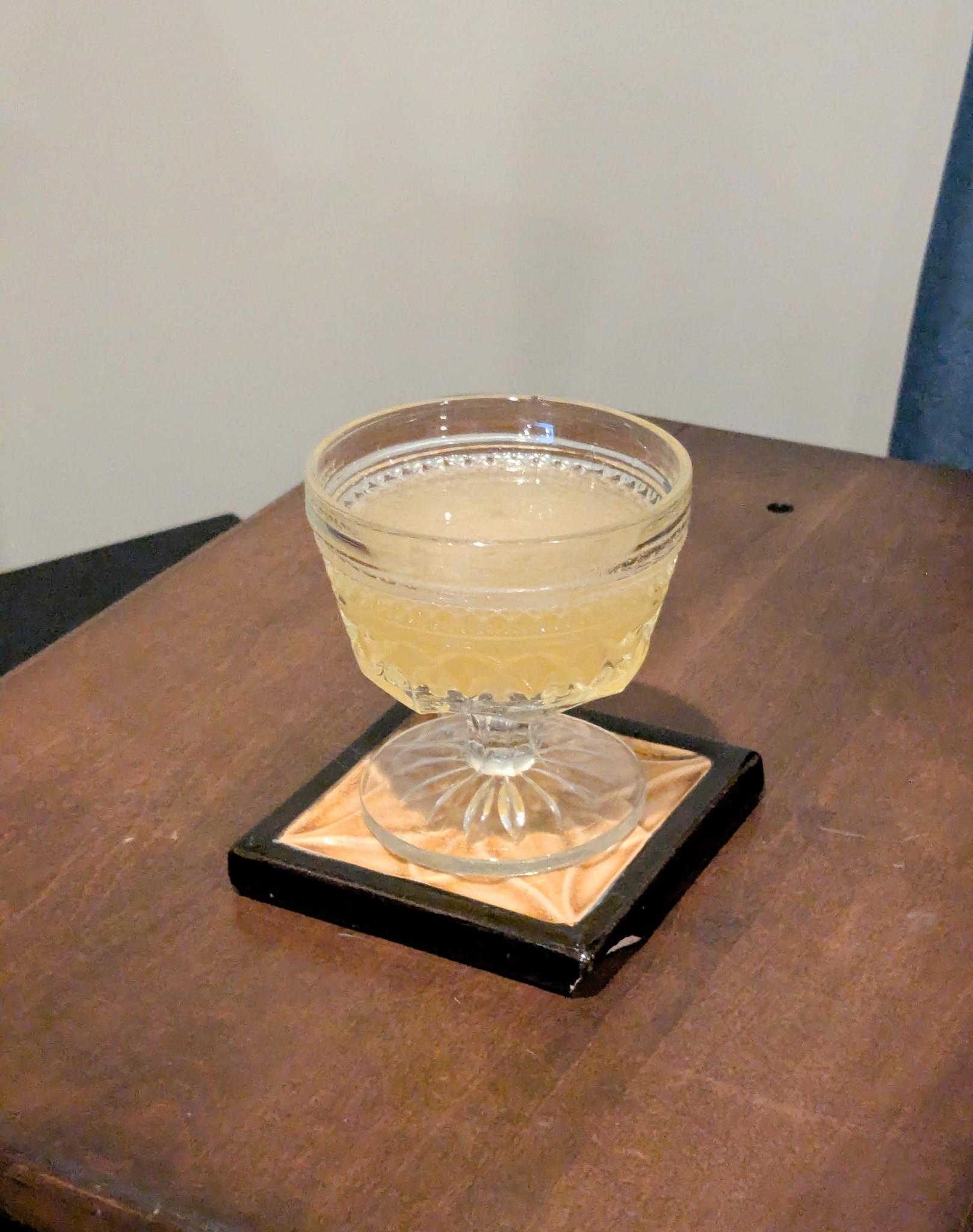 ¾ oz brandy (Remy VSOP) ¾ oz Green Chartreuse ¾ oz Maraschino (Luxardo) ¾ oz fresh lemon juice Shake until very cold; double strain into a chilled cocktail glass. No garnish.