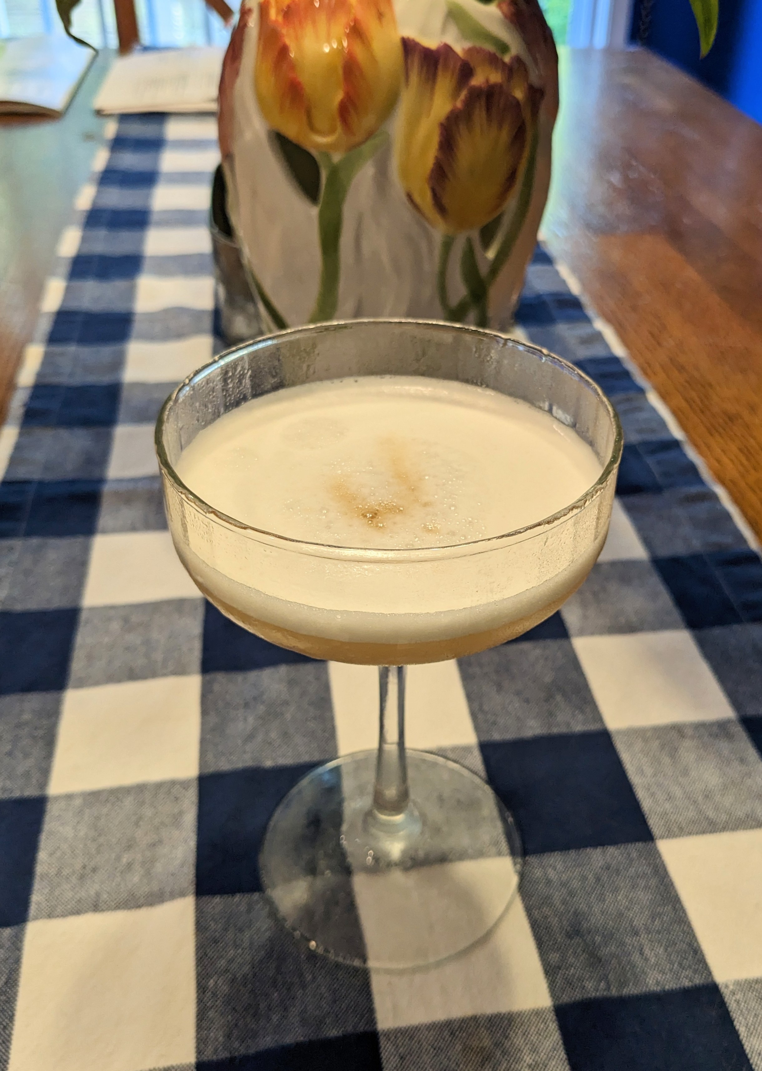 Dry shake (without ice) vigorously for 10-15 seconds. Fill the shaker with ice cubes and wet shake vigorously for 10-15 more seconds.